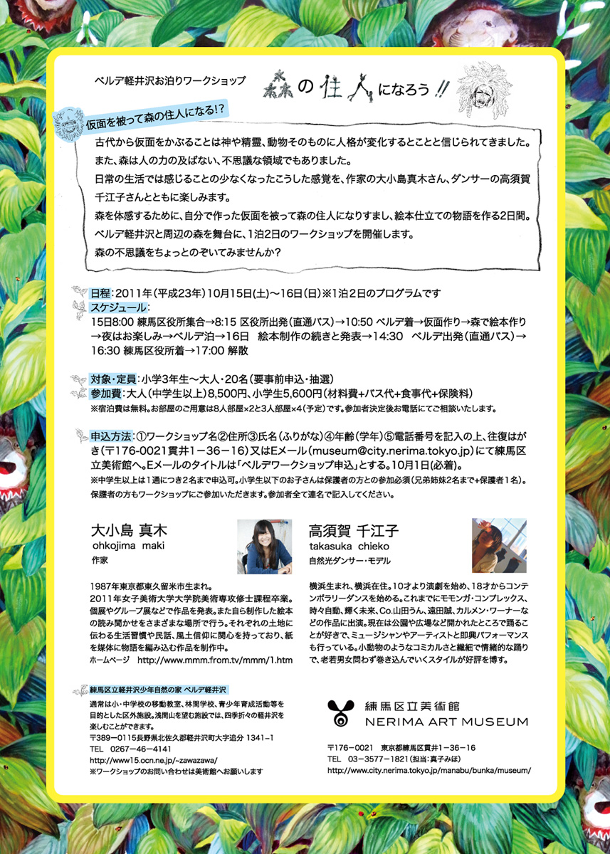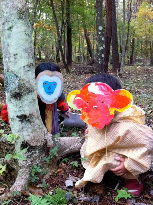 自分で作った仮面を被って森の住人になりすまし、絵本仕立ての物語りを作る2日間。